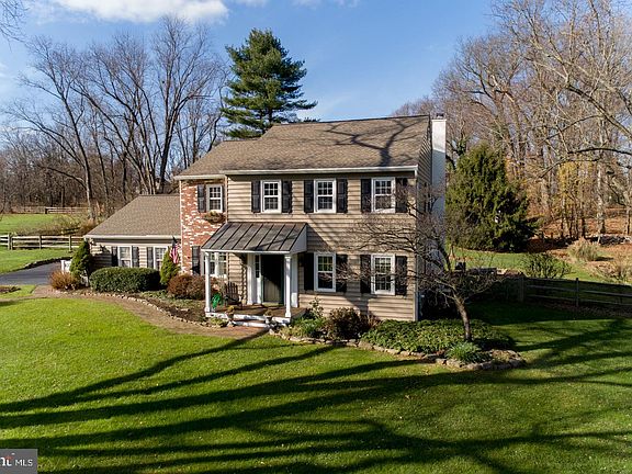 Situated three miles north of Peddlers Village and a short walk from historic Carversville, this four bedroom, two and a half bath colonial is nestled into a beautiful, quiet neighborhood. The location boasts preserved farmland in the surrounding area, award-winning Central Bucks School District, and is located in the highly desired Buckingham Township. This home has been lovingly maintained for the past 19 years by its current owners. A new roof and siding were installed in 2013 along with a front porch consisting of mahogany flooring and a copper roof by the current homeowners. As you walk under the arbor, flanked in trumpet vine, to the back yard which slopes upward to a half basketball court, you will find a large patio with flower gardens edged in stone and mature trees. There is a fire pit in the backyard and the perfect spot for a hammock to enjoy cool nights and sunny days. The backyard also has a nice level area for a volleyball/ badminton net and is the perfect backyard retreat for relaxation and entertaining. Upon entering the main entrance you are greeted by recently installed bamboo hardwood flooring that flows through into the gathering room and sunny dining room. Crown molding has been installed throughout most of the lower level along with the upper landing, owner's suite, changing area, and hall bath. As you step down into the kitchen you will find the charm of an old farmhouse banked with painted wood beams, painted brick, and wood paneling, 12x12 rustic tiles, granite countertops, stainless steel GE oven and microwave, Asko dishwasher, and tile backsplash. There is a walk-in pantry and coffee/wine bar in the hall leading to the mud room. The mud room/laundry room area is a good size with cabinetry and a clothes drying ceiling pole. Just off the dining through french doors is a large sunroom with a side entry door. The main level also offers an office with a glass door and a large living room and gathering room with a wood-burning fireplace and custom-built cabinets on either side, large picture window with custom wood blinds, and a brick focal wall. It's the perfect room to get cozy in on cool Bucks County evenings. Upstairs are four large bedrooms and two full remodeled bathrooms. The owner's suite has shiplap recently installed on the main wall, crown molding, durable Amtico flooring in the changing area with Venetian plaster walls, and a custom two-person tiled shower with two shower heads and built-in cubby's. This home offers reasonable property taxes for its location and has a ton of character and charm. It is a must-see! 2021-07-06