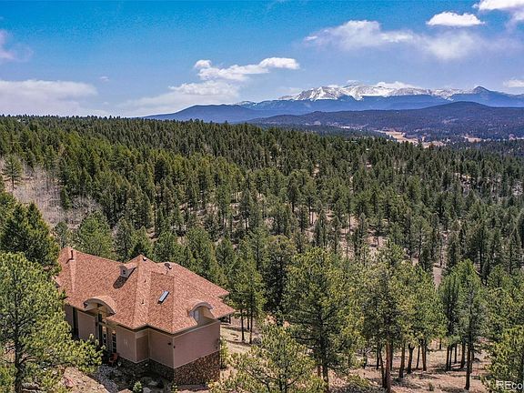 BEAUTIFUL elegant home atop 35 acres of private, immaculately maintained forest. There are no compromises here! Enjoy all the benefits of living in the mountains without giving up modern conveniences or comfort. Escape your fast-paced lifestyle and relax in this exquisite mountain estate! Fabulous Pikes Peak views from every south-facing room in the home. Additional mountain views include the Sangre de Cristo and Collegiate Peak ranges. This home has it all! A dramatic entry opens to a two-story Great Room with oak and granite fireplace. With 5 bedrooms and 5 baths this custom home provides over 5,000 square feet of living space including a luxury swim spa and a guest apartment with full kitchen and separate entry. Living areas feature custom trim and cabinetry with hand-carved details. Kitchen features cherry cabinets, granite counters and floors, walk-in pantry and has all appliances included. Home has radiant heat flooring throughout, plenty of hidden storage and even a secret bookcase into an attic playroom! Steps away from the house you can enjoy the panoramic views from the completely enclosed, heated swim spa! Relax and unwind in the comfortable Master Suite, featuring marble and tropical Merbau hardwood floors and an oversized Jacuzzi tub. A Tuscan-style entertaining room with oversized windows is a favorite place for guests to gather and a walk-out basement provides space for you to expand! Just 15 minutes from Woodland Park & Pikes Peak Regional Hospital. Private, gated road shared with only one neighbor. No HOA. No rules. New roof, new boiler system. Don't miss out on this property - there isn't another like it! (Other rooms: Secret Hideaway, and Library or Home Theater)