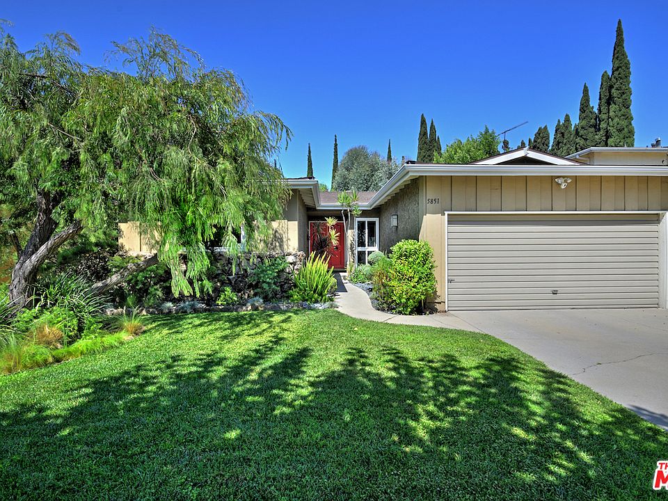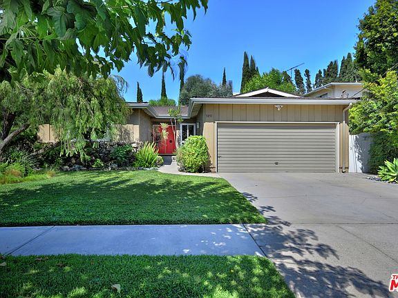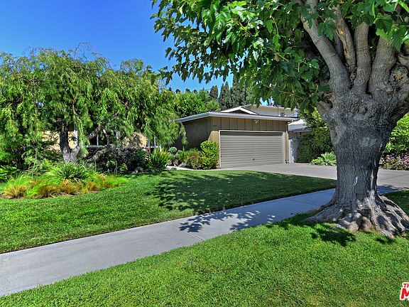 Stylish Mid-Century set on a quiet street in Valley Village with indoor/outdoor flow. Enter through double doors to spacious living/dining w/fireplace and den. There are hardwood floors throughout. Step out to amazing Zen garden with water feature, large covered patio, professional landscaping and lighting, perfect for dining al fresco. The updated eat-in kitchen features stainless appliances with caesar stone countertops, separate laundry and direct access to two car garage. The master bedroom is en-suite with two additional family bedrooms and one full bath. Located near synagogues and a short drive to upcoming NoHo West shopping and entertainment complex.