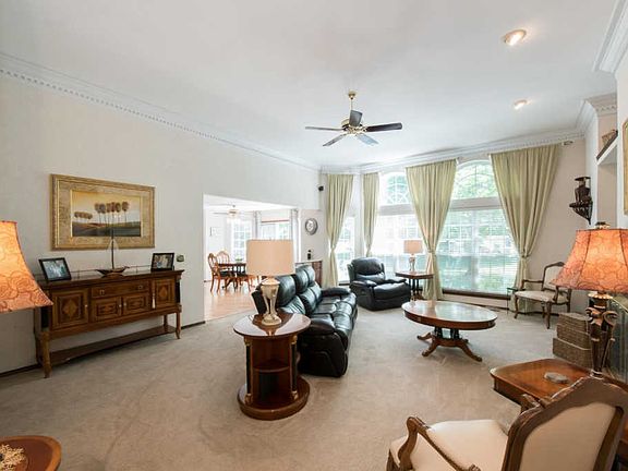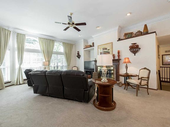 PRICED WELL BELOW THE NEIGHBORHOOD! UPDATE TO YOUR TASTE! Located on 1 acre of level land & backing to trees, on a cul-de-sac tucked in the back of a great neighborhood...the perfect setting! Custom built, brick front ranch with soaring 11' ceilings & a wall of windows in the great room to admire the wooded view. Special details include crown molding, 2 fireplaces, arched doorways & an office with double french doors. The spacious, updated kitchen features granite counters, stone back splash, walk-in pantry & stainless steel appliances. Private master suite with wood views has a walk-in closet & ensuite bathroom with separate vanities, jetted tub & separate shower. Finished lower level includes a large & open rec room with a wet bar & full bathroom perfect for entertaining. Side-entry oversized garage. Excellent location near shopping, restaurants & amenities. Very near elementary & middle school. Easy access to major highways. See this fabulous home today!