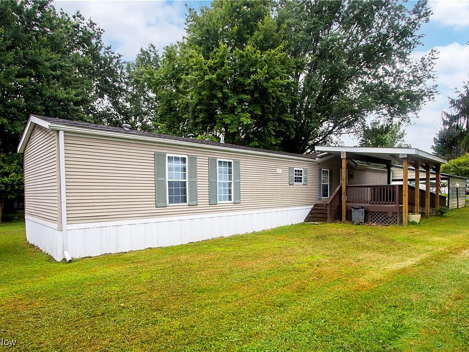 Welcome to 5852 Lot 44 Cleveland Road, Wooster – located in the quiet and well-kept Spruce Tree Mobile Home Park. This 1997 Spruce Ridge ES Kingsley model features 3 bedrooms and offers a clean, well-maintained interior surrounded by mature trees for added privacy and charm. Enjoy the convenience of a double-wide carport, a covered front porch, and a deck with an accessibility ramp. Inside, you’ll find a bright and inviting space with new appliances that will transfer to the new owner, making this home truly move-in ready. A storage shed in the backyard provides extra room for tools, equipment, or seasonal items. Whether you're looking for affordable living or a low-maintenance home in a great Wooster location, this is one you don’t want to miss!
