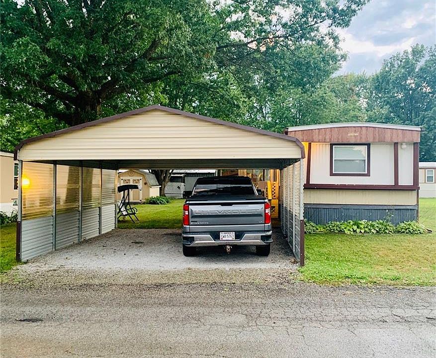 Affordable Living! Located in Spruce Tree Village 55+ community. One owner. Very well maintained home featuring 3 bedrooms and 2 full baths. All appliances stay. Home has R13 insulated drywall walls. Many updates have been done throughout the years including, furnace, water heater, electrical panel, windows, Marillat kitchen cabinets, shower valves, outside water bib, metal roof, etc. Buyer must be park approved. Lot rent is $280/mo plus water/sewer/trash. Call your favorite realtor for your personal tour.