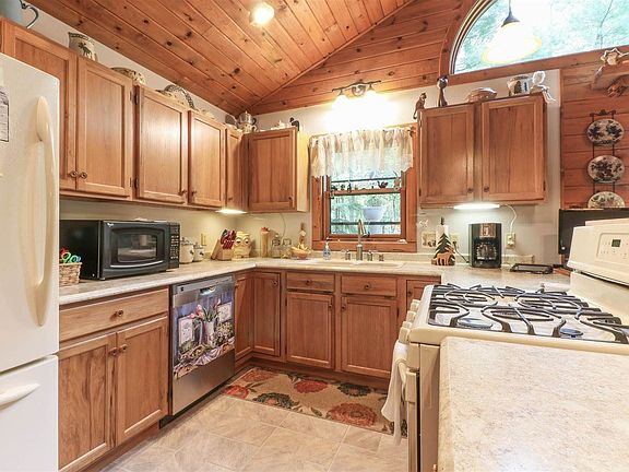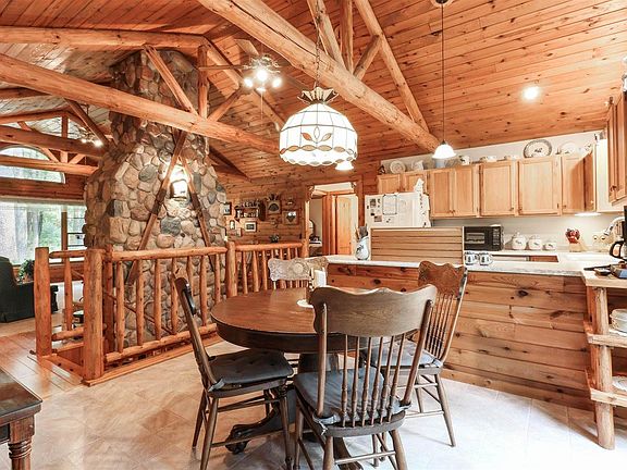 Located in the Town of Saratoga, this 3 bedroom, 2 bath Golden Eagle log home on just under an acre is nestled amongst the trees for added privacy. Main floor offers an open concept kitchen, dining room with new patio door leading to the deck overlooking the back yard, spacious living room up front with vaulted ceilings and log beams, wood burning fireplace with beautiful stone accented chimney, master bedroom with double closets, attached full bath with double sinks also has access off of the dining room, 2 additional bedrooms, second full bath are located on the other side of the house, laundry is located in the hallway which leads to the 2 stall attached that is insulated and dry-walled. Lower level is partially finished with a family room and office/den, plus plenty of unfinished portion that offers storage space and the potential for a large workshop. Relax on the back deck as you watch the birds and other wildlife or take a walk around the property on one of the paths that the seller has on the property. Storage shed with loft offers space for the lawnmower and snowblower.