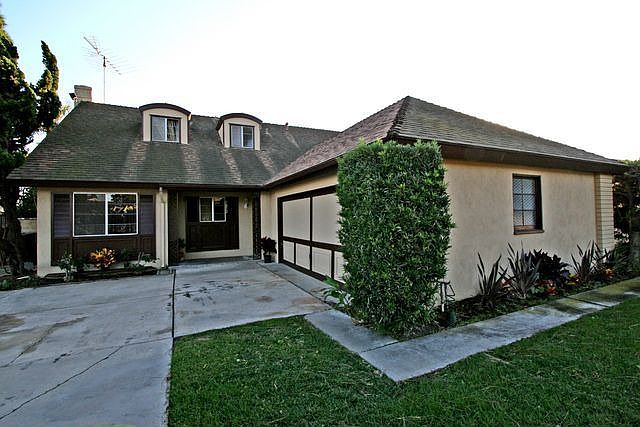 Great floor plan with two bedrooms and one bathroom downstairs, and three bedrooms and one bath upstairs.Spacious formal dining room has two large windows and sits directly off of the kitchen.Large living room has a fireplace and sliding glass doors which lead to the patio.Huge master suite has a walk-in closet and a fireplace. Lots of light from the dormer windows.The back yard is gigantic! There is a covered patio, lime, lemon, and persimmon trees, and lots of other plants to provide shade on those hot summer days! Conveniently located just across the street from the bank, pharmacy, 99 cent store, and other personal services such as the barber shop, nail salon,the beauty college, bus stop, Burger King, Dairy Queen, donut shop,etc. Easy access to the 22, 405, & 605 freeways.