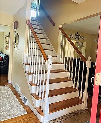 Many many updates in the last few years , new windows, anterior, exterior doors , hardwood floors, laminate floors upstairs, new hardwood stairs, ceramic floors in the kitchen with granite counter tops, backsplash, new SS appliances! Updated bathrooms. Newer paint 2 years ago, replaced garage door 3 years ago!