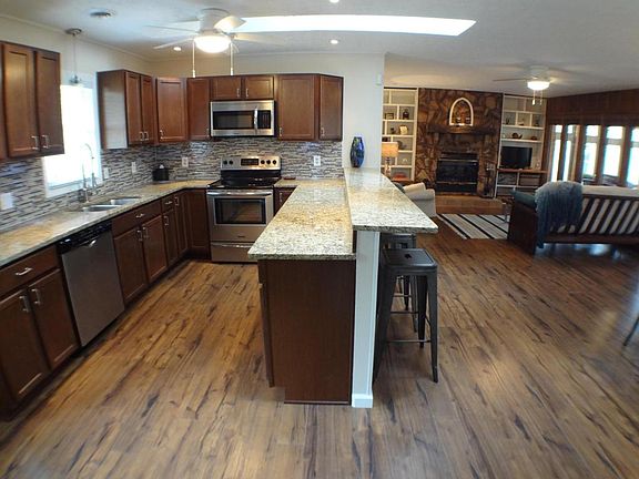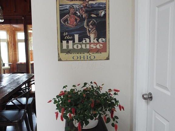 Year-round living/entertaining dream, 2 miles from Marina, upscale open floor plan with Seneca Lake view from MBR, deck, 4-season sun room (BR#3?), kitchen, DR, LR. Garage shop. Backwater view. Golfing &/or lease dock. Bookcase wall/wood burning fireplace. Redesigned kitchen, SS appliances, D/W , custom cherry cabinets, 11' 2-tier peninsula, granite counters, glass/granite backsplash. Redesigned bath 2-sink vanity/med cabinets, matching granite/backsplash, sleek pull-out faucets, whirlpool tub/ceramic/tile surround, stylish adjustable removable hand shower. New nautical ceiling fan lights, Mason lights, interior doors/trim, Cherry closet organizers in bedrooms/hall. New double-hung windows, new furnace & heat pump A/C, W/D hookup. Perennial easy care landscape, deck, stone patio/walk.