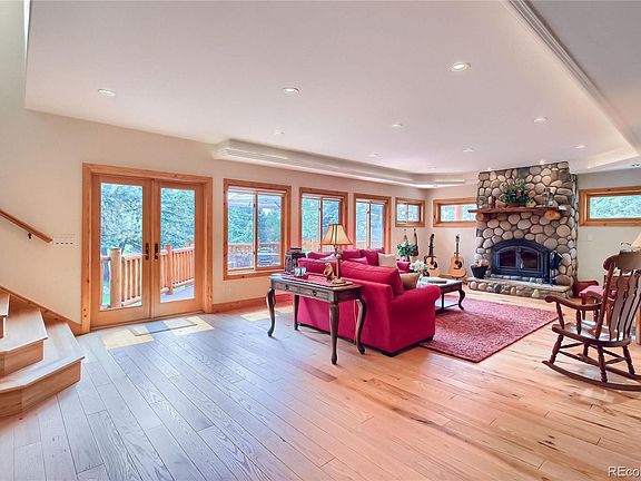 This beautifully renovated home sits on a park like 2 acre lot, a short drive to downtown Evergreen and with easy access to Denver. Wonderful mountain property with lots of trees, beautiful meadows and abundant wildlife. The owner has lovingly restored the woodwork, including the doors, and replaced all of the hardwood flooring on both levels with stunning 5" oak plank flooring. On the main level there is a cozy home office with an alcove for shelving and a closet. You step down into the den for TV viewing or just relaxing. In the large eat in kitchen, there are all new KitchenAid appliances including a gas range and luxurious granite counter tops. The great room features a wood burning fireplace with river rock surround and log mantle. The formal dining room can accommodate the largest gathering and includes a prep sink and beverage center. There is a conveniently located powder bath with easy access from the deck. Upstairs the master suite has a gas log fireplace with an updated 3/4 bath and walk in closet. The second bedroom is ensuite with shiplap siding and you will love the charming new bathroom. The 3rd bedroom has a barn door into another full bathroom with double sinks. The upstairs den was converted from two bedrooms to one larger room and could easily become a guest suite with the addition of a closet. The adorable reading room/library is the perfect quiet spot and don't forget the hideaway up the ladder for the little ones. To complete the upper level, the laundry room is just off the master and there is a quaint little powder bath. On the lower level there is a workout space, 3/4 bath, workshop and 2 stall car garage with epoxy floor and 1 car stall with a mechanics pit. There is also a attached barn with a 1 car stall and 600 square feet for storage. The deck is huge and wraps around. It includes covered space, ice melt system, new 6 seat hot tub and a firepit. You can get access to the upper decking from all of the bedrooms.