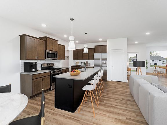 Trendsetter Homes at Lions Gate. At the heart of the Monroe is a well-appointed kitchen highlighted by a walk-in pantry and island, which is open to the Breakfast Nook, Great Room, & covered Back Porch. The adjacent Dining Room stylishly accommodates more formal entertaining. The Master Suite is separate from the other three bedrooms, creating a luxurious private retreat with large walk-in closet, double vanity, and glass-enclosed shower. This home comes complete with a 10-year limited home warranty.*PHOTOS ARE REPRESENTATIVE OF FLOOR PLAN. ACTUAL FINISHES & FEATURES WILL VARY.
