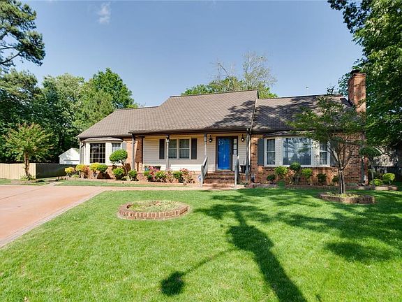 Back On Market. Beautiful brick ranch located on cul-de-sac in quiet Kempsville neighborhood. Solid construction & quality features include wood laminate floors, granite counters, solid wood doors, custom trim/built-ins, brick fireplace w/ gas logs, & 4 bay windows. Big fenced backyard w/ deck, large shed, & beautifully landscaped front yard. Nice floor plan with a good sized family room & kitchen w/ big eat-in breakfast nook. Huge 4th bedrm upstairs is ideal for Rec rm., man cave, hobby rm., etc. Large primary bedroom walk-in closet & double vanities. Very conveniently located to I-64 & shopping.