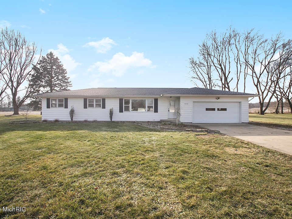 Large 3 bed 2 bath ranch just outside the city of Three Rivers. The eat-in kitchen features newer cabinetry and counter tops, and French doors that lead to a second living area and includes a gas fireplace. The master suite is sure to leave an impression with the double sinks, huge walk-in closet, and main floor laundry room. The basement is wide open and ready to be finished adding an additional 1200 sq ft. which includes a second washer/dryer area. The finished garage and large lot are also sure to please.