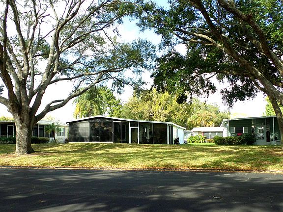 This 1200 sf home has been redesigned to maximize its space and allow sunlight to flow throughout. There are endless custom touches and high end finishes making this home better than new. All walls and ceilings have been dry walled with an attractive knock-down finish and completed with 5.25" crown molding and LED recessed lighting. Quality laminate throughout the living areas and kitchen and bathrooms are tiled with a wood look porcelain plank. A fabulous new kitchen has solid wood soft close cabinetry, granite counter tops and stainless appliances. Center island lends maximum storage space plus a large built-in china cabinet in the dining area. Absolutely beautiful new bathrooms with custom tiled step-in showers and soft close vanities with under granite counter sinks and comfort height commodes. In addition to all the updates and stunning park like setting of this lovely home, there is endless outdoor living space overlooking the parkway with a Florida Room under air accessible right off your living room via sliding doors plus a spacious screened porch perfect for entertaining and which also encloses the utility/storage shed with washer and dyer. 5854 Brigadoon Way sits on the breathtaking, canopy-draped parkway in Camelot Lakes Village, a gated 55+, resort style community with a 3 pet policy. The home overlooks lake with fountain and swans and is just steps out your back door to the auditorium with lap size pool and whirlpool. The clubhouse with another pool, fitness center, library, business center, billiards room, outdoor sports courts and ceramics kiln studio is 3 houses away. Monthly lot rent of $1446 includes water, sewer, irrigation, trash/recycling curbside pickup, lawn maintenance, taxes and amenities. Luxury living at the lowest cost in Sarasota! Cash