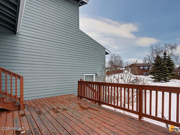 Impressive 4 bed, 3.5 bath Custom Built gem in Muirwood Park! Vaulted ceilings and large windows illuminate an open living space and a fabulous kitchen. Main level primary suite with mountain views and gas fireplace. Features radiant in-floor heat, 3-car garage, and a fenced yard with deck. Potential ADU in the huge walk-out basement. Close to Kincaid Park and other recreational opportunities!Welcome to a bright and inviting home where every detail contributes to a warm living experience. From the moment you enter, the vaulted ceilings and abundance of natural light invite you into a spacious living area with stunning mountain views. The main level boasts a sophisticated kitchen with granite countertops, a dining area perfect for gatherings, and a cozy double-sided gas fireplace enhancing the ambiance of the main floor primary suite, which also enjoys serene mountain vistas. The Primary Bathroom is a delight, with a 6-foot soaking tub and a large open shower. Upstairs, the home continues to impress with three additional bedrooms and a versatile loft/den/office space, all benefiting from the natural light and views that define this residence. The basement offers a family room, two bonus rooms/dens, and is prepped for a wet bar, with French doors leading outside ideal for those considering an ADU or mother-in-law quarters. The outdoor space is equally captivating, featuring a fenced yard, storage shed, and a large deck, complemented by rhubarb and raspberry patches. The front yard is adorned with mature lilac, roses, and irises, adding color and charm. This custom-built home not only ensures comfort with radiant in-floor heating but also positions you in Muirwood Park, a community cherished for its friendly spirit and unique events like Trick or Treat in the Heat. Complete with a massive three-car garage that offers extensive built-in storage, this property is a testament to thoughtful design and maintenance, located just a stroll away from community highlights. Discover the perfect blend of elegance, comfort, and community in this exceptional home.