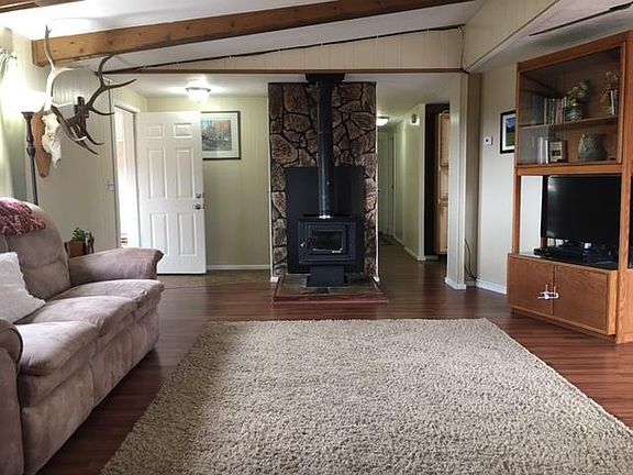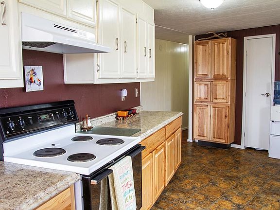 This is a really well kept home on a permanent foundation.. Country living right on the edge of town. Nice horse property with inside hay storage. Fences are in good shape. There is a long list of improvements. (List at office ) Comes with a home warranty. Great views in all directions.