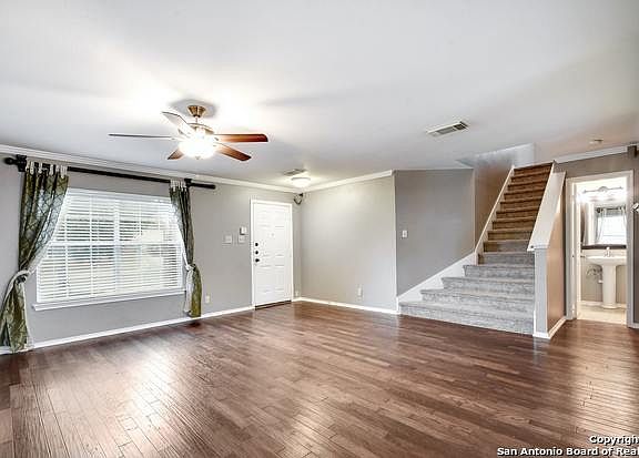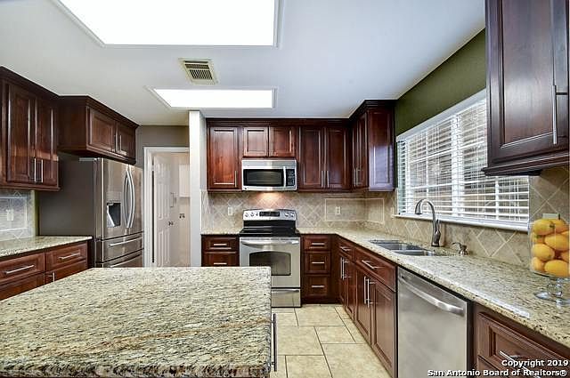 Absolutely stunning, upgraded to the nines, wood floors w/ crown molding in the living room. Kitchen features Santa Cecilia granite counter tops, stainless steel appliances, touch activated Moen faucet, custom soft close 42" cabinets, custom mobile island, ceramic tile and custom tile accents on backsplash. Upstairs features ample loft space, a large master bedroom & on suite bath w/ granite, mosaic tile accents, Kohler brushed nickel fixtures , NEISD, spacious backyard w/ pebbled patio & privacy fencing