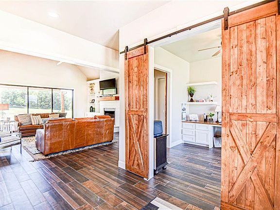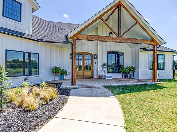 Situated on 3.5 premium acres, this nearly new modern farmhouse home meets luxury. One of the most distinguished homes in Guthrie, the home has breathtaking views out of every window overlooking the expansive grounds and a fully stocked pond. High ceilings, stained cedar beams & sprawling open floor plan create the ideal atmosphere for entertaining friends & family. A shiplap fireplace with a concrete hearth warms the living room and the three stacking sliding glass doors provide an easy flow from inside the home to the outdoor living space. The chef's kitchen is perfect at every detail from the oversized center island & bright cabinetry down to the gold hardware & schluter in the back splash. The master bedroom lux ensuite features a chic stand-alone claw foot tub and oversized glass shower. The attention to detail while designing and building this one of a kind, breathtaking home is unsurpassed. The home also features an oversized 3 car garage and 700+SF of unfinished attic space.