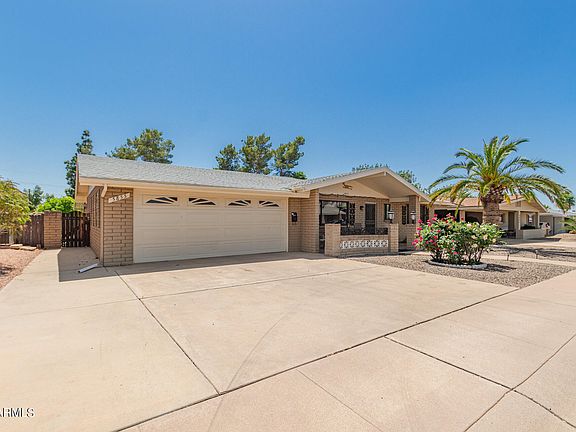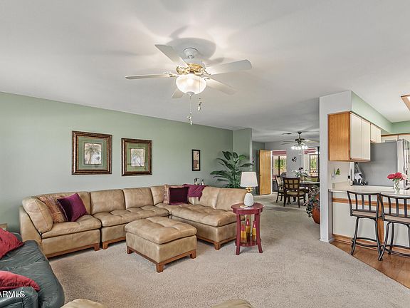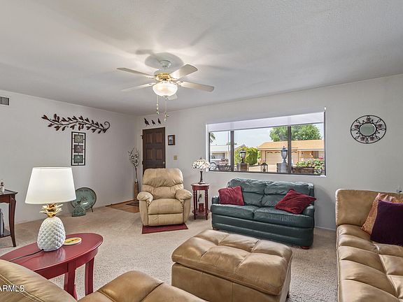 This lovely 2-bed, 2.5-bath with a den residence in the wonderful adult Community of Velda Rose Estates is waiting for you! You'll be greeted by beautifully colored roses & a welcoming porch. Fall in love with the charming open layout showcasing a trendy palette & soft carpet in all the right places. The impeccable kitchen comes w/ paneled cabinets, plenty of counter space, new SS appliances, & a peninsula w/ a breakfast bar. Grab a cool drink & relax in the Arizona room during hot summer afternoons. You'll also find a cozy den ideal for an office. The master bedroom includes ample closets & a private bathroom for added comfort. Create lasting memories in the backyard offering a covered patio, storage sheds, & plenty of space for hosting fun gatherings! See this gem today!