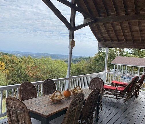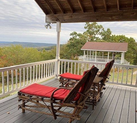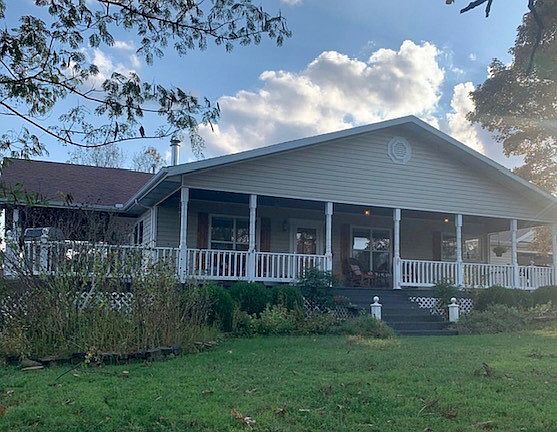 Beautiful views from this ridge top property on 7 acres, unrestricted, with two homes, one metal storage building, and a pavilion. Main house hosts 4 bedroom/4 bathroom 2845 sq feet and is currently rented until July. Main house and back house are currently turnkey Airbnbs. Main house has been updated. Many renovations- kitchen, custom cabinets, granite countertops, SS appliances, 2 remodeled bathrooms. Main house has downstairs kitchenette, outdoor storage sheds and 20x35 metal workshop. Homes share well, have separate septic systems. Small cave on the property and stunning mountain top views. Excellent potential and all future bookings will transfer to new owners. Renter in 2 home leases to July. Property SOLD AS-IS. Back on market due to Buyer financing. No fault to sellers or property.