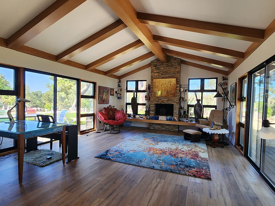 Fruit treesSerene yardLush canyon viewsLarge windowsNatural lightSpacious open layoutSliding glass doors