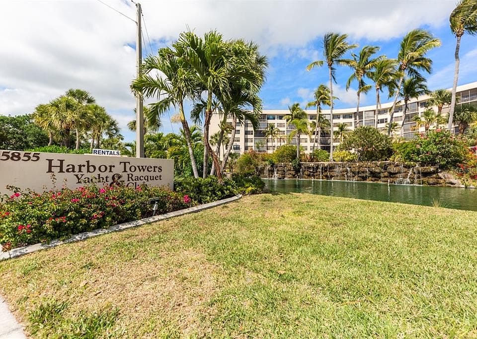 PRICE IMPROVEMENT! RESORT STYLE SIESTA KEY LIVING IS FINALLY WITHIN YOUR REACH! WITH STUNNING VIEWS of THE GULF OF MEXICO FROM EVERY ROOM, THIS UNIT WILL NOT LAST LONG! Beautiful and mostly turnkey furnished, this large 2 bedroom, 2 bath condo boasts a double master layout, an extended living room/sunroom, a gorgeously updated kitchen with granite counter tops, and a rare and highly coveted deeded covered parking space (currently valued around $14,000). The bathrooms have been freshly painted, new hot water heater replaced (July 2022), and a newer AC (2017). There is also a on-site storage unit that comes with this property. Harbor Towers Yacht & Racquet is a pet-friendly bay front condominium complex with tons of amenities, including: 2 heated pools, newer fitness center, his/her saunas, 3 Har-Tru tennis courts, outdoor BBQ grilling patio, bike storage, kayak storage/launch and a beautiful marina to dock your boat (slips available first come first serve basis). Relax or fish along the intracoastal waterway. Walk to the World-Famous Siesta Key Beach to catch some rays and watch the sunset, or take the Siesta Key Trolley to the village to enjoy dining, shops, and live entertainment. Live here year-round or choose to only come for part of the year. With a two-week minimum rental period and onsite rental program, you can recoup some of your carrying costs while you’re not here. DON’T WAIT! Island-style living starts here!