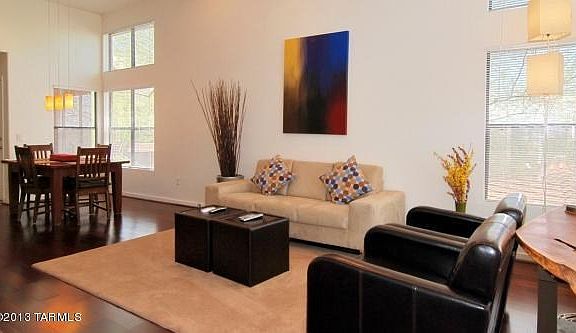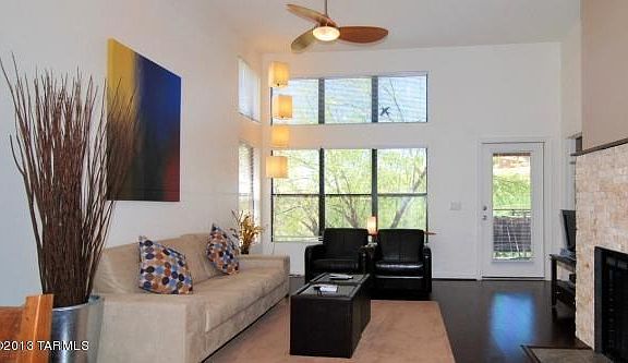 For more information on this property, contact the Listing Agent, Janell Jellison at (520) 918-5469 or JanellJ@Mindspring.com. Very Special! One of only 5 condos in complex with 12 ft ceilings. Beautiful mountain and golf views. Wood floors in living and dining room, granite slab throughout. Stainless appliances, upgraded cabinets, tile in kitchen and baths. Great investment or second home. 3 community pools, rec center, athletic facility.