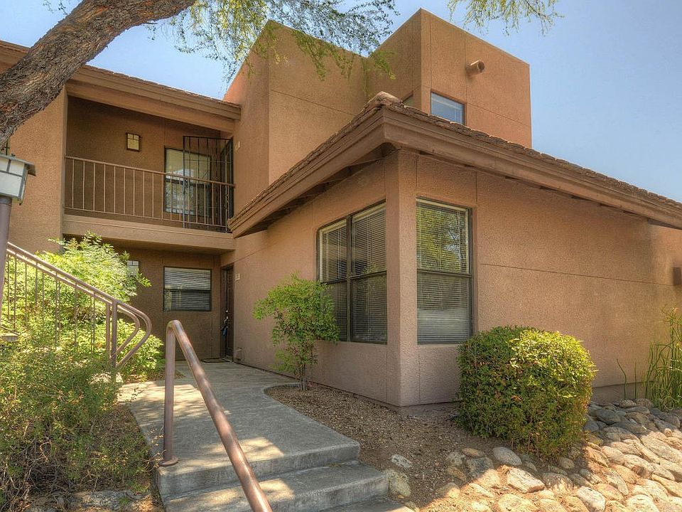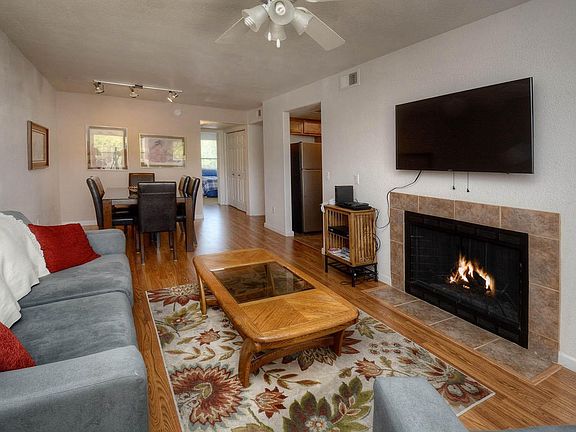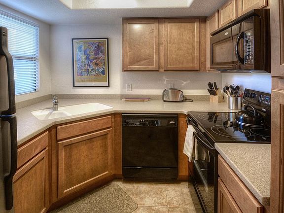 PRICE REDUCED! Mountain views from great room and master bedroom. Wonderful, convenient location, first floor, sold fully furnished 2 bedroom/2 bath condo located across from the pool. Very private, enlarged patio. Wood floors, upgraded appliances, corian counters. Perfect for bikers with locked storage area. Grassy dog walk area. Ideal turnkey unit for winter visitors. HOA fee covers clubhouse, pools & spas, kitchen facilities, exercise facilities, water/sewer, fire protection, refuse collection, security patrol/guard, exterior pest & termite control, building exterior and roof. Rental income available upon request.