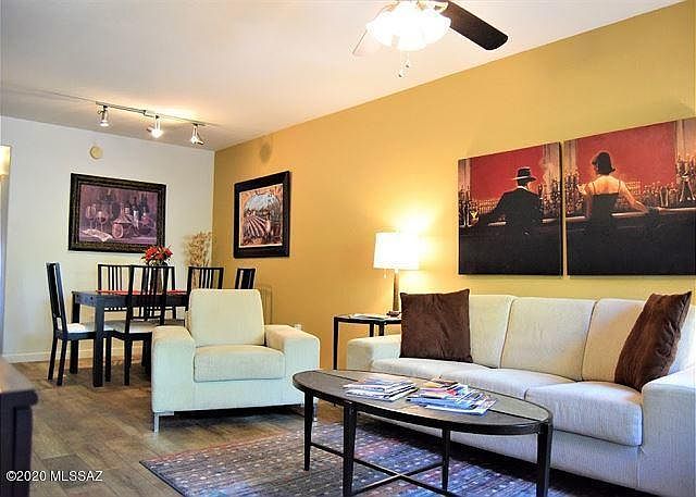 As the sun crests the mountain top it is time to start planning your exciting excursions. Plan them as you sip your favorite beverage on the secluded patio or by one of the 3 gorgeous pools. Later walk to the grocery store and enjoy your equipped kitchen or dine at one of the many close restaurants. As your fun filled day of adventure, in Sabino Canyon, golfing, biking, or being part of the many activities Tucson offers winds down one of two comfortable bedrooms will be awaiting you. Some unique amenities include, handicap access, walk in shower, laundry, Xfinity Cable, Netflix, and wifi. Complex includes a workout facility and great views. RATE IS ONLY AVAILABLE UNTIL SEPT 30, 2020