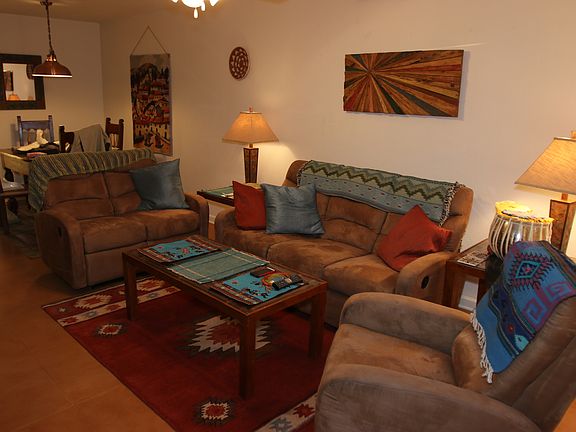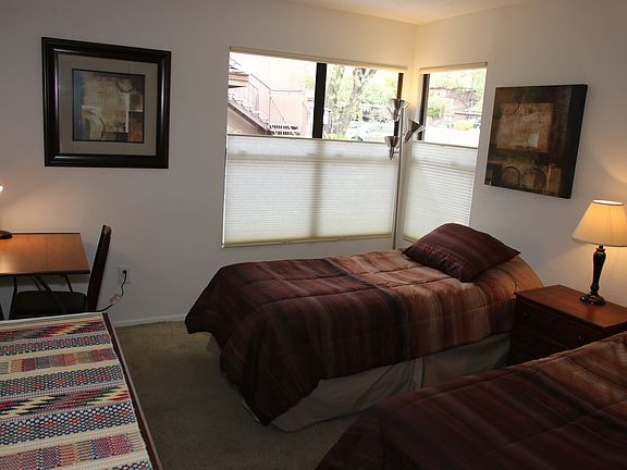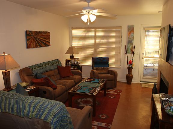 Comfortable, accessible, ground-level two bed room, two bath home- away-from-home tucked back in the mature trees on the west side of the Greens near Ventana Canyon. Sunrise, sunset and all day long, the Santa Catalinas (so close you can almost touch them) display their beauty.The property features 3 pools (two heated with adjacent hot,an exercise room, club house, and is surrounded by wonderful golf courses. Ventana Canyon trail head is a mile up N. Kolb Rd, and Sabino Canyon (for hiking, biking and sight-seeing, one of the most beautiful places in the southwest- or anywhere), is a five-minute drive. Less than half a mile down the road are some great restaurants, nice shops, gelato, Bashas grocery (Starbucks inside), a CVS, Shell Station,