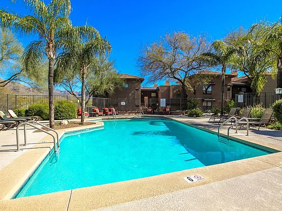 Charming condo in the coveted Green at Ventana Canyon community. Enjoy 2 spacious bedrooms, a large great room for entertaining your guests, rich laminate wood flooring, plush carpeting and beautiful tile floors. The kitchen is complete with jet black appliances, sleek counter-tops and plenty of cabinetry. Community includes 3 pools, hot tubs, and an exercise facility. HOA covers water, sewer, trash, termites, & exterior maintenance.