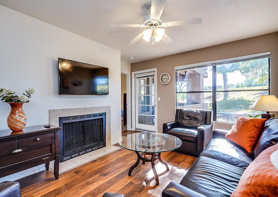 This fabulous first floor condo is located near the golf course. It would make a perfect 2nd home or a vacation rental. The furnishings do NOT convey. Resort-like amenities, 3 pools, 2 spas, fitness center & clubhouse. Call LA for more information. OWNER/AGENT: A member of HSG LLC is a licensed Realtor in California