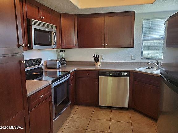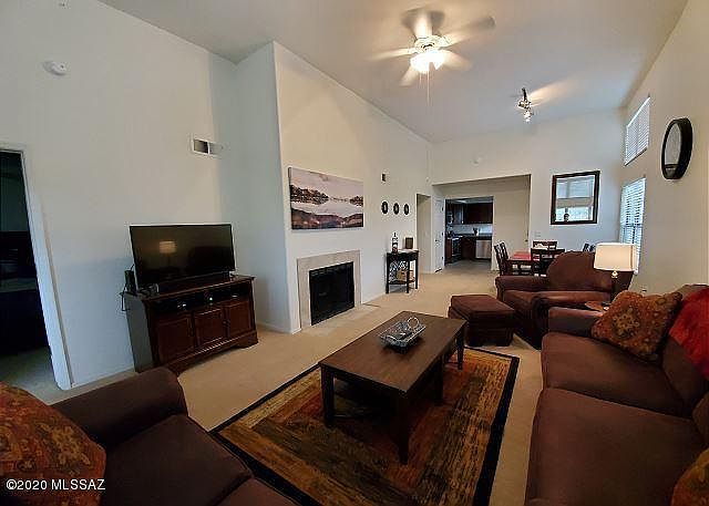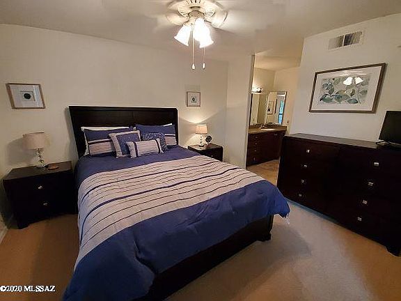 Second Floor Magnificent Ventana Canyon Golf Course Views. 14 foot ceilings and clear story windows offer a bright and open feel to this condo. Tile floors in the kitchen and bathroom with upgraded kitchen appliances and fully equipped kitchen. Split floor plans offers a bedroom and bathroom on each side with a sofa sleeper so can accommodate 2 extra people. Community is in the heart of Ventana Canyon with access to 3 pools (2 heated) 2 jacuzzi's, exercise room, community grills and more! Walk to the area grocery store, 5 restaurants, day spas and more with Sabino Canyon and Ventana Trails being minutes away! THIS RATE IS ONLY AVAILABLE THROUGH SEPT 2020
