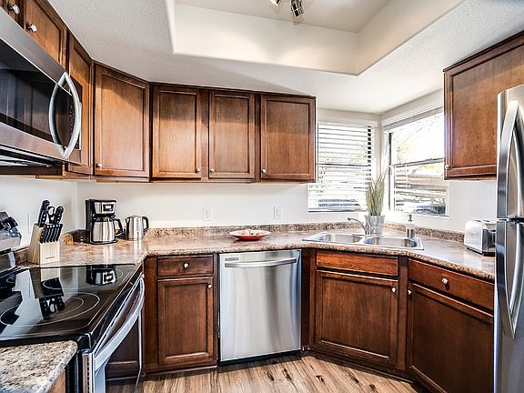 The Greens offers resort-style amenities with 3 swimming pools (two heated during winter), 2 spas, a fitness center, and community BBQ areas. Convenient access to grocery stores, restaurants, Sabino Canyon, golf courses, scenic hiking and biking trails, shopping.