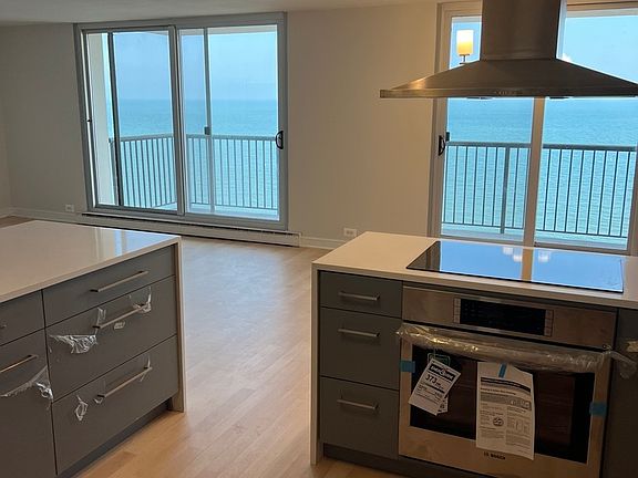 VIEWS, VIEWS, VIEWS! This 2 Bed, 2 Bath, 1600 SF condo has been COMPLETELY REDONE! Brand New Kitchen with modern cabinetry and tons of storage, capped off with waterfall edge quartz counters and marble back splash. Modern redone bathrooms have marble counters and porcelain tile. Well organized closets and amazing views make this the perfect city home! Enjoy the amazing lake views and sunsets from 3 balconies overlooking Lake Michigan, the beach, park and the city. NO rentals allowed, NO W/D in units. Garage spot #44 (assigned) is included. on second floor of garage, first space to left at top of ramp. Storage unit (#89 on 3rd floor) included. HOA ($929.75) includes water, parking, common insurance, doorman, tv/cable, gym, pool, exterior maintenance, scavenger, snow removal, and wifi/internet. 2021 Taxes: $2,897.26 (Homeowners and Senior Citizen exemptions received) Full amenity building features pool, work out room, laundry room and 24 hour doorman. 2.75mm in reserves. Professional photos coming soon!