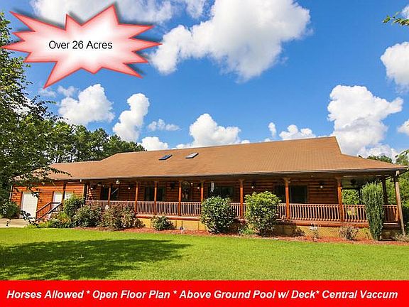 A RARE FIND*PRIVACY~PRISTINE LOG CABIN RANCH on 26.57 Acres* Backs Up to Little River*BRING Your Horses~Pasture Area~ Walking/Riding Trails* Open Floor Plan* LG Family Room w/ Gas Log FP* Island Kitchen w/ Corian Counters, SS Appliances* 2 Master Suites* Laundry Room w/ Sink~Tons of HARDWOOD Floors~ FULL WRAP Around Rocking Chair PORCH~HUGE REAR Deck Overlooks Salt Water Above Ground Pool~ Oversized 2 Car Attached Garage plus 2 Car Detached Metal Carport* Central Vacuum* Alarm System* Handicap Accessible~