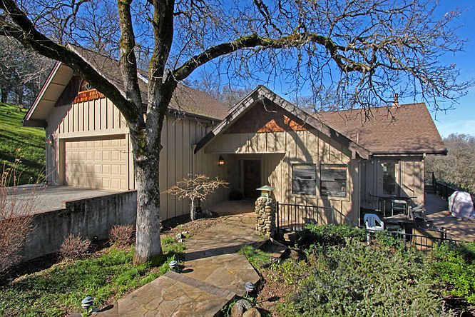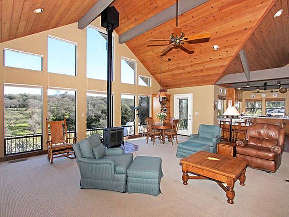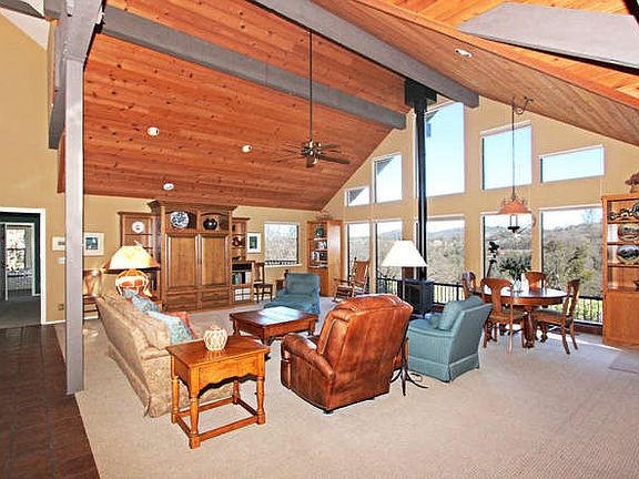 Michael Kent Murphy Designed Home In Auburn Valley Country Club Estates on 20 Acres. Views out every window into the wooded area or overlooking the large pond. Open floor plan with 3 bedrooms and 2 baths plus a den with built in library bookcases. Custom barn with corral & cross fenced area.