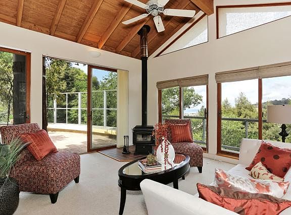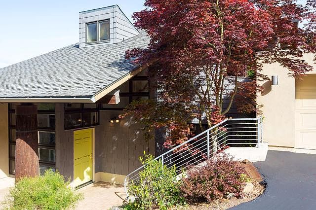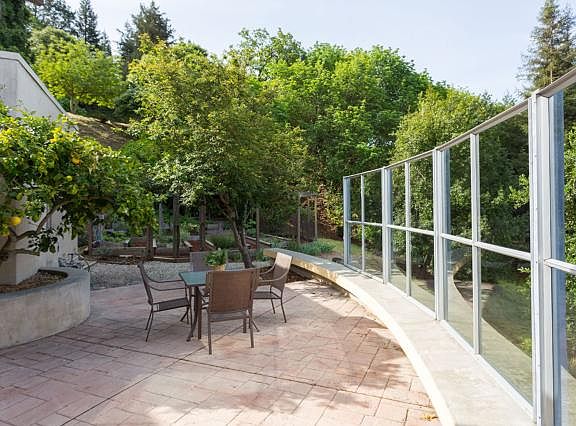 Nestled in the hillside on a double lot, this home was custom designed and built to live with nature. Canyon & Bay views, and excellent indoor/outdoor access. All main floor rooms are level out to all day sunny, protected patio! Deer fenced vegetable garden awaits a green thumbed Buyer!