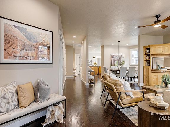 Impeccably cared for, this 3-bedroom, 3-bath home offers 2,360 square feet of comfortable living in the heart of Hidden Springs. The welcoming great room features a wood-burning style gas fireplace and flows effortlessly to the formal dining area and kitchen, complete with breakfast bar, walk-in pantry, and new stainless appliances. The spacious primary suite includes an ensuite bath, walk-in closet, and private access to the enclosed 15’x15’ patio—perfect for morning coffee or quiet evenings. Upstairs, a bonus room with a private entrance and full bath offers flexible space for guests, a home office, or multi-generational living, with plumbing for a kitchenette. You’ll find ample storage throughout, new exterior paint, and an oversized 2-car garage with a large storage room. The small, easy-care yard is ideal for low-maintenance living—so you can fully enjoy the neighborhood’s open spaces, parks, and scenic trails. Ideally located in The Village, steps from the community library and gathering spots. Hidden Springs offers an active lifestyle with two community pools, parks, fitness center, organic garden, 800+ acres of open space, and miles of scenic trails—foothills living at its best!