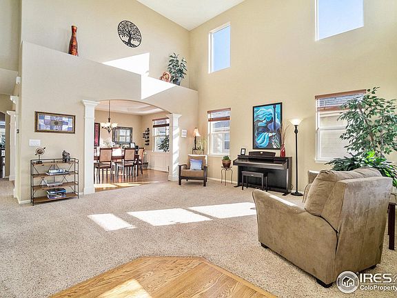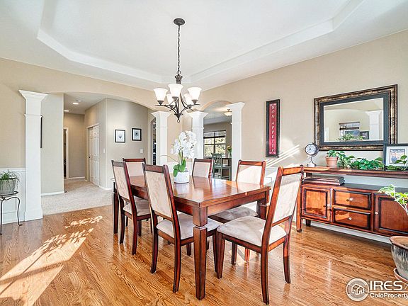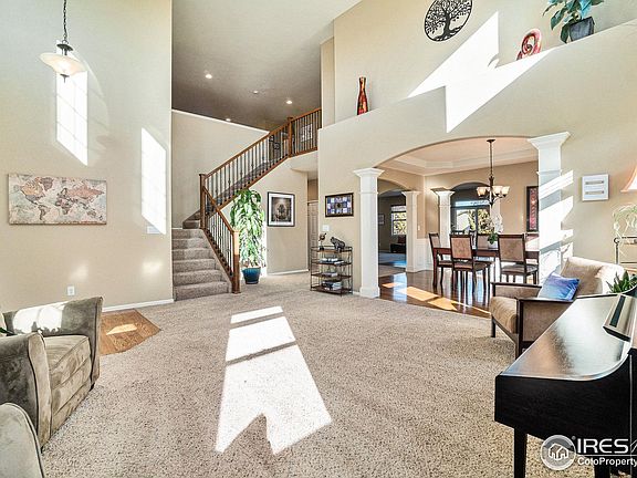 Welcome to the epitome of luxury living! This meticulously crafted 2-story residence is a true gem, offering 5 bedrooms, 4 full bathrooms, a 3-car garage, and an impressive 4,175 finished sq ft of pure elegance. You'll be enchanted by the seamless blend of sophistication, functionality, and energy efficiency. The heart of this home is the spacious gourmet kitchen, featuring stainless steel appliances, dual ovens, a convenient pot filler, granite countertops, and a large center island with hardwood floors. Upgraded cabinets with pull-outs and undermount lighting add a touch of class, making this kitchen a chef's dream. The adjacent eating area flows effortlessly onto a trex deck, expanding the entertaining space to the outdoors. The main floor also hosts a bedroom with a walk-in closet and an adjacent full bathroom, providing convenience and flexibility. The formal living room sets the stage for elegant gatherings with its vaulted ceiling and abundant natural light, while the formal dining room features tray ceilings, hardwood floors, archways, and wainscoting for unforgettable dining experiences. A cozy family room, complete with a gas fireplace, custom cut-ins, and a built-in desk area. Upstairs, a versatile loft space awaits, ideal for an office, crafting area, etc. The Primary Suite is a true oasis, featuring a tray ceiling, gas fireplace and a luxurious en suite 5-piece bathroom. This home is environmentally conscious, thanks to fully paid off solar panels contributing to energy efficiency. The property includes a Home Warranty through First American and a New Roof (Sept 2023) for added peace of mind. The 3-car garage comes equipped with an EV charger. Additional features include a welcoming front porch with sunshades, two 40-gallon hot water heaters, an unfinished basement with a 9' ceiling and ample storage closets throughout. Situated in the Timnath Ranch community with access to a pool, clubhouse, exercise room, parks, hiking/bike trails, and ponds.