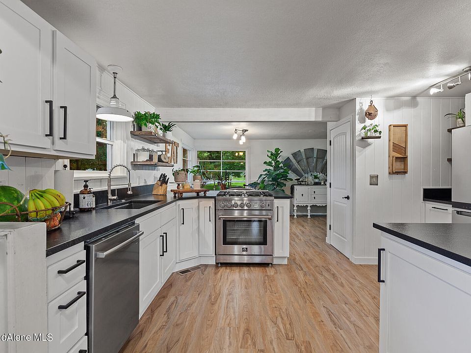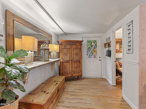 Farmhouse charmer on .99 acre in beautiful Dalton Gardens. This home may be situated on 4th St., but once you enter the driveway, it feels like you're in the country. Beautiful mature trees surround property for a very private feel. Newly remodeled interior that includes new LVP flooring, carpet, kitchen cabinets, stainless steel appliances, leathered granite countertops, light fixtures, air conditioning and much more! Spacious main floor master bedroom suite. Cozy living room with wood burning stove. Enjoy stunning views of Canfield Mountain from the new back deck, lots of room for gardening, 25' X 48 detached garage, barn and so much more. This home has it all including charm, land to get your hands dirty and yet minutes to all amenities!