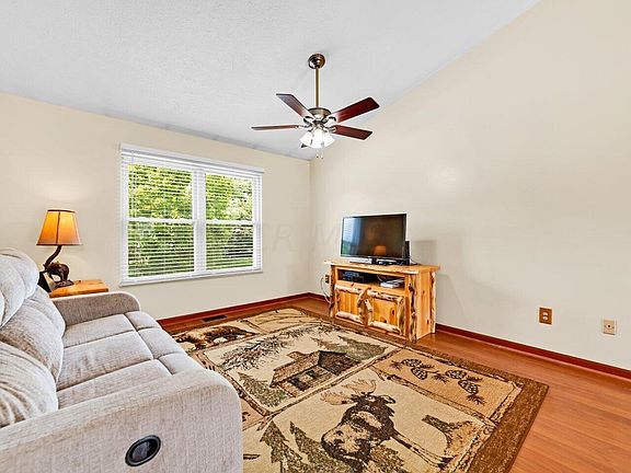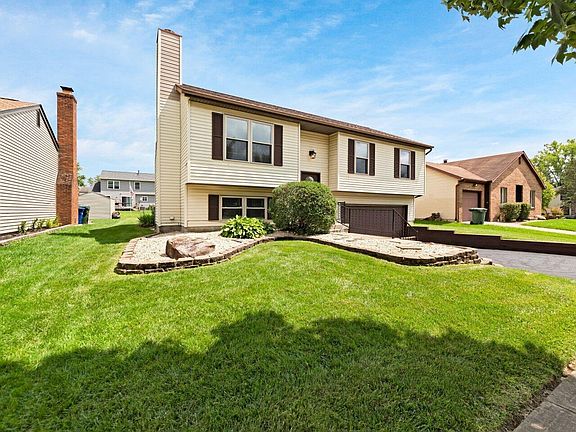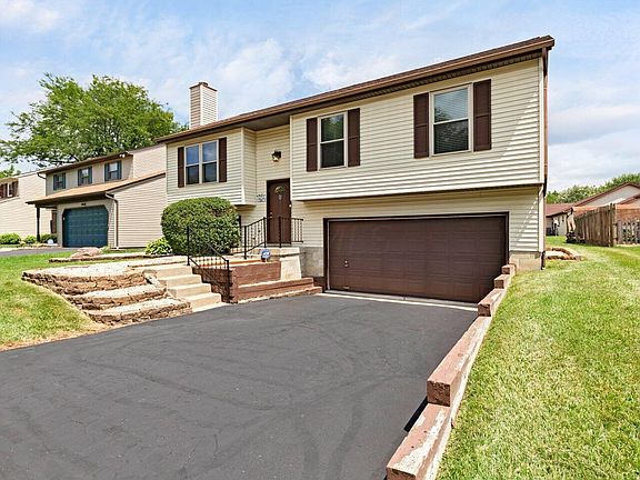 Welcome Home! This bi-level home on a cul-de-sac offers 3 bedrooms, 2 full baths, living-dining area with vaulted ceiling and kitchen on the upper level. Sliding door off dining room leads you to a deck over looking a nice back yard. Lower level has large rec room with woodburning fireplace. Washer & dryer remain as well as TV in primary bedroom. Universal windows in 2018, HVAC in 2010, roof 2009. Westerville schools with Columbus taxes.