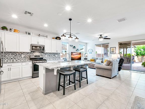Situated on a 7,620 SqFt lot, this home offers plenty of privacy. The backyard is an entertainer's dream with an extended covered patio, travertine tile, and an outdoor covered grill and bar, making it the perfect spot to relax and enjoy the beautiful Arizona sunsets.