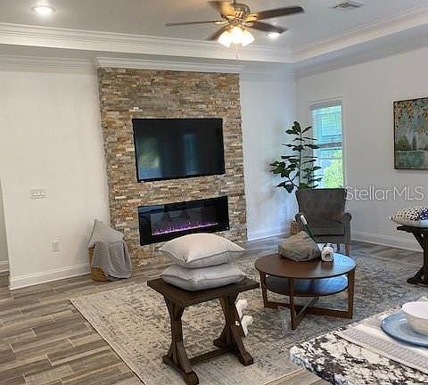 Brand New Energy Star Certified Home in the beautiful well established neighborhood of Deer Brooke South. This 4/2/2 home has it all- wood look tile throughout main living area, built in brick inlay fireplace, Custom designed kitchen with island, stainless appliance package, with a breakfast area as well as separate dining space. Gorgeous master suite complete with barn door leading to the custom bath- walk in tile shower, his and hers vanities and spacious closet space. French doors leading to the outdoor patio. Energy star items include hybrid water heater, 15 seer AC, radiant roof barrier, foam injection into the walls and attic, insulated windows and hi efficiency lighting and so much more. This home has so much to offer. Schedule your showing today!