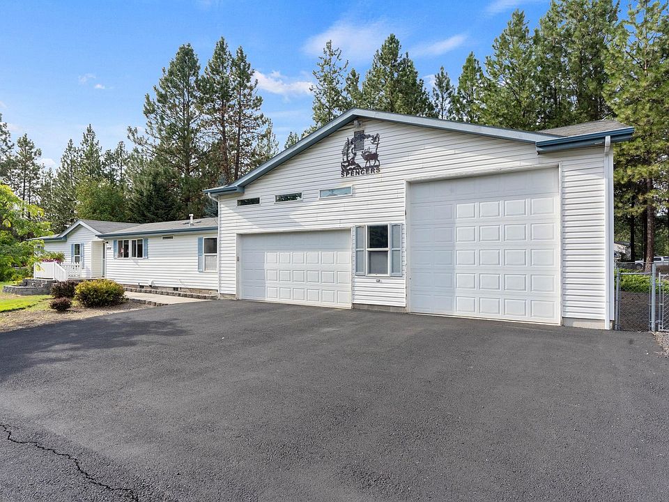 Must see this well-kept 1-owner home & shop in nice area of Nine Mile Falls! "Honey, I blew up the garage" - huge 40 x 40 heated/insulated shop is attached to this 1848-sq-ft home via covered concrete deck! Dozens of outlets, double garage door plus RV door and storage shelves. Need more? There's RV parking outside! Inside, entire home has LVP flooring put in 3 years ago. Spacious kitchen has new dishwasher and sink. Huge master features walk-in closet, spacious bath with separate shower and garden tub. Two other large bedrooms and full bath at other end of home. Office space or bonus room in the middle! Living/family room open to dining room and kitchen. Furnace, central air, hot water heater 4.5 yrs old. Vinyl siding redone 6 yrs ago. RoofMaxx applied last year (5 yr warranty). Fenced yard has 4 gates. Located in Little Sandy Loop neighborhood, some homes have horses! Room for you to add outbuildings, plant gardens or ? Located 1-2 blocks off 291 & very close to Lakeside Middle School.