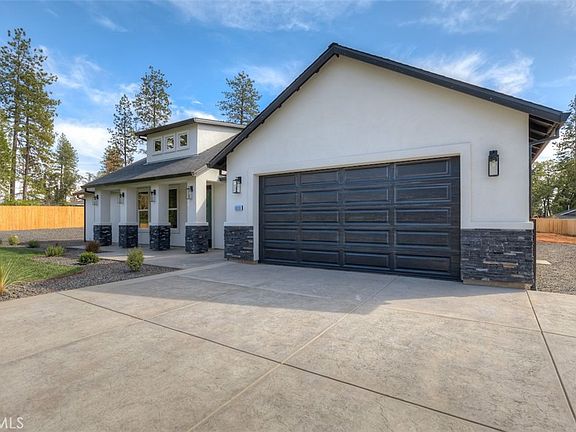 This beautifully designed home is nestled in a neighborhood on the east side of town, often described as having that "classic Paradise" feel. Surrounded by old-growth Ponderosa Pines, the large property immediately gives a welcoming sense of home. As you arrive, you’ll notice the impressive oversized stamped concrete driveway, fresh landscaping, a spacious lawn, and mature trees lining the road. The home features modern craftsman-style curb appeal, and inside, you’ll be greeted by a vaulted ceiling, a stylish tiled fireplace, and an oversized kitchen with quartz countertops, a tiled backsplash, stainless steel appliances, and a great view of the expansive backyard—large enough for a potential shop, ADU, or extra parking. The split floor plan includes a stunning primary suite with double sinks, a soaking tub, and an upgraded walk-in tiled shower. At the opposite end, two generously-sized bedrooms and a full bath provide plenty of comfort. Additional features include solar power, an all-electric setup, and a gas meter already connected if you prefer gas fixtures in the future. This property has so much to offer—you’re sure to fall in love!