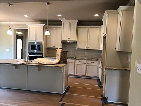 The Winston: Stunning Basement Home w/ Inviting Rocking chair Front Porch! Foyer opens to the study & dining w/coffered ceiling. Family is open to chef's kitchen w/ granite, 42"white cabinets, tiled backsplash, entertaining island & SS appl's. Hardwood Floors in foyer, kitchen, breakfast, Dining & Family. Iron Railing Staircase, Stacked Stone Fireplace, Heavy Trim & Gorgeous Lighting! 2nd Level offers 3 large secondary BR's. Master has Trey ceilings, sitting room, a private covered porch & an open master bath with tiled floors & his/her closets. Cherokee Bluff Schools