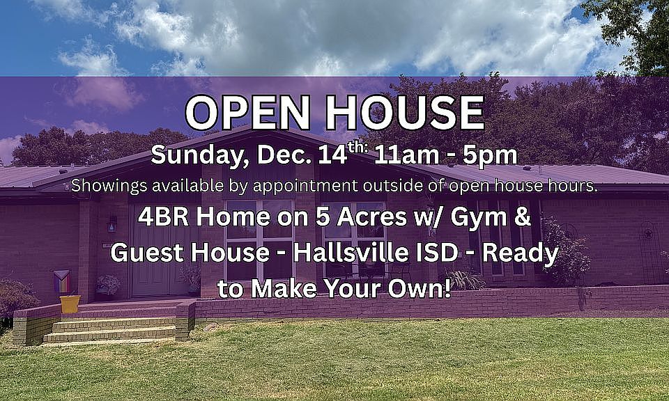 Come make this ONE your forever home! Loads of potential with country living close to town! Longview address, but in the award winning Hallsville ISD. Possibilities are endless with this 4/2/4 home. This 2100 sf home sits on 5+ acres and is close to Hwy 80, Loop 281 and I-20. There is a large breezeway that connects the home to a 1900+ sq. ft. gym equipped with basketball goals and a weight room (Could be a workshop). This property also has a 500 sq.ft. "train car" that could be guest quarters with 1BR, 1BA and kitchen with W/D hook-ups. Train car has it's own electric and water meters. Property also has a storage building and hay storage area with a tack room, also a concrete slab with electric to put another storage bldg., greenhouse, or workshop, etc. Completely fenced with plenty of room for horses and children to play. Client MUST have pre-approval. Updated pics available upon request.