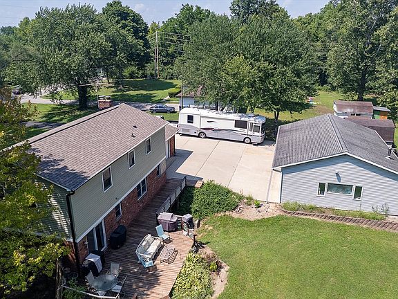 Don't miss this exceptional opportunity! This home offers an ideal setting for rural living in the middle of the city, situated on a generous 1.5-acre wooded lot with serene Little Eagle Creek as its backdrop. Checkout the dream workshop, equipped with heat and custom built-in cabinets. Ample garage space! It's all within the 465 loop while still close to shopping, schools & highways. You can walk across the street to Northwestway Park Aquatic Center & Baseball Fields. Plus, there's no HOA :) The home features 4 bedrooms, 3 baths, an open-concept kitchen and dining area with induction range, recessed lighting, and hardwood floors throughout. The great room, with its charming brick fireplace, and the fully finished basement offer plenty of space for relaxation and entertainment. Step outside to a sprawling deck perfect for enjoying nature. Freshly painted exterior in 2024!