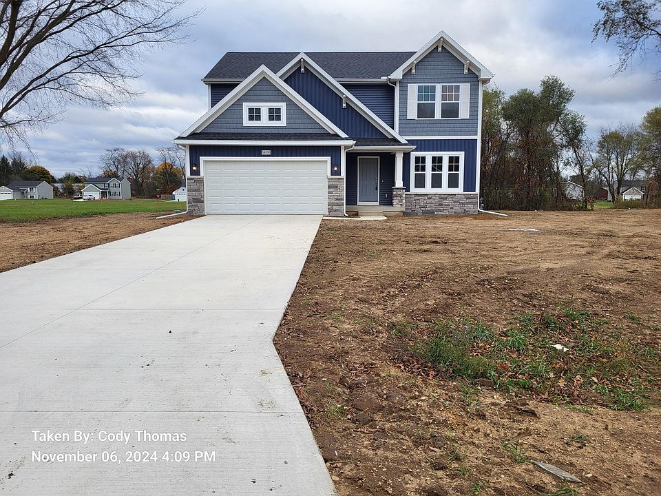 Newly constructed colonial in the River Watch Community. This 2-story home boasts features including: 10-yr structural warranty, energy efficiency, 200 AMP service, attached 20x24 two car garage, 75-gallon water heater upgrade, quartz counters in designer kitchen including island with extended edges, 14x20 patio, French door entry at the den, laminate flooring on the entire main level, GE appliance package including: microhood, dishwasher, and range, upper level laundry, separate bathtub and shower in the master bath including dual sinks, finished basement: rec room, bathroom, and guest bedroom, and covered front porch entry.