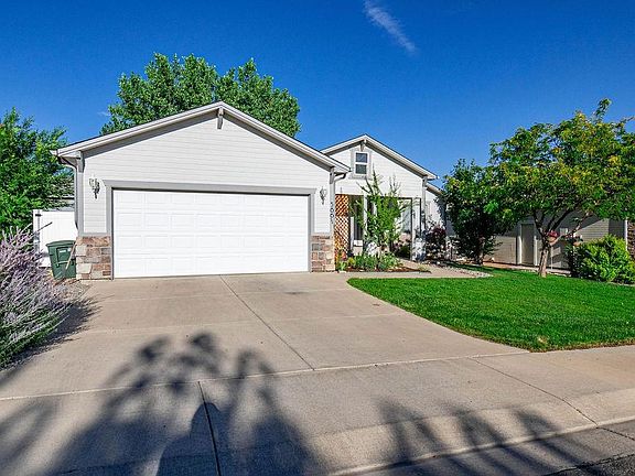 This charming home is move in ready. It feels like "home" the minute you walk in. Flooring has been replaced with nice, light wood laminate. Open kitchen/dining area combo looks out into the lovely xeriscaped yard. The yard has mature trees and the patio has a great automatic awning for added shade plus a portable gazebo that provides lighted ambiance when sitting in your patio enjoying the cooler evenings. The primary bath has a jetted tub plus walk in shower, double sinks and hand rails. The bedroom has a spacious walk in closet. This home is bright and cheery with large windows taking in the Colorado sunshine. Refrigerated air is welcome on these warm summer days. The seller has installed new tract lighting in the kitchen that includes a pantry and all appliances. The gate in the back yard opens to open space for cool evening walks. You have views of the Monument, Bookcliffs and on a clear day, even the San Juans. Water heater is only one year old. New roof this month (September 2023)The seller has kept up with everything and shows pride of ownership. Come take a look at this exceptional home.