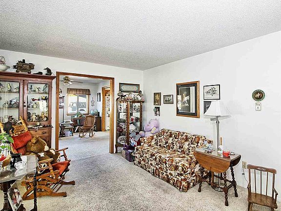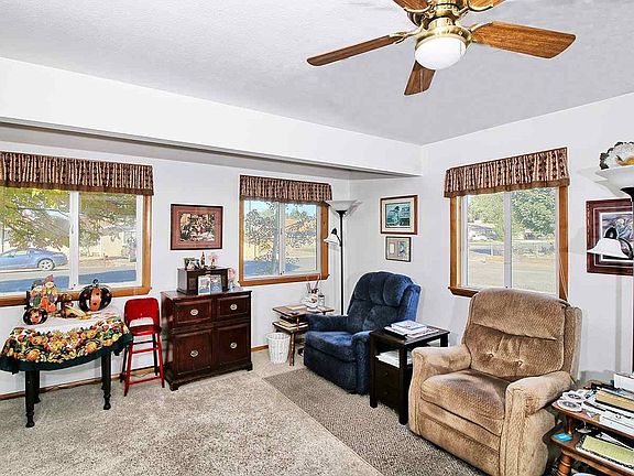 This is a perfect ranch style home with a basement. It has a very nice detached 2 car garage/shop. 2 very nice sized bedrooms that are conforming and 2 bathrooms on the main level. Open concept kitchen/dining with a separate living and a family room. Mudroom/office with a laundry room off of it. Basement is used for storage and partially finished . (could be a 3rd bedroom it does have a closet but does not have window access.) Lots of natural light. Sits on .27 of an acre. It is a very nice spacious lot, fully landscaped with a shed that stays. Great east facing covered deck. No HOA. Tons of parking for toys etc. Currently the are using city water. There is a $50.00 water assessment through taxes. Roof was replaced in 2011. Furnace was replaced in 2017. EXCLUSION-Mirror on south wall in living room.