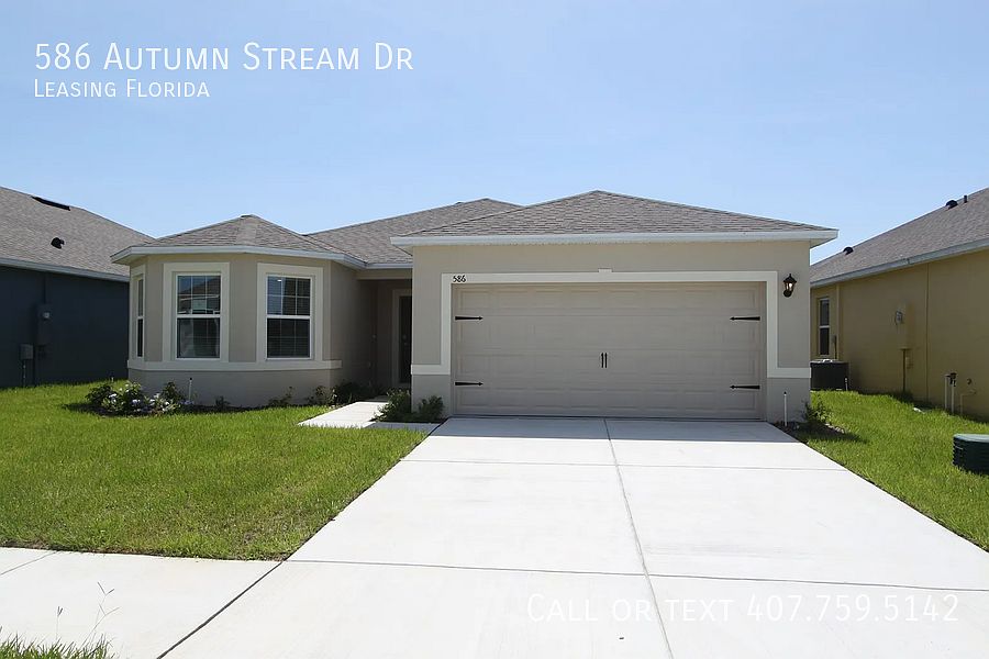 Welcome to 586 Autumn Stream Dr, a breathtaking smart home nestled in the heart of Auburndale! This stunning property boasts a 2-way split floor plan, perfect for maintaining privacy and comfort. Enjoy the luxurious master suite, complete with an ensuite bathroom featuring double vanities, a walk-in shower, and a spacious walk-in closet. The gourmet kitchen is equipped with stainless steel appliances, bay windows, and granite countertops throughout the home. The oversized great room provides ample space for relaxation and entertainment, while the 18x18 tile flooring adds a touch of elegance. Take in the serene pond views from the comfort of your own home, and enjoy the community amenities, including a pool and cabana. Conveniently located between Orlando and Tampa, with easy access to I-4, this property offers the perfect blend of luxury, comfort, and convenience. Don't miss out on this incredible opportunity to own a piece of paradise! Double Vanities Ensuite Bathroom Granite Counters Second Bathroom Small Breakfast Bar Spacious Master Bedroom Walk In Shower